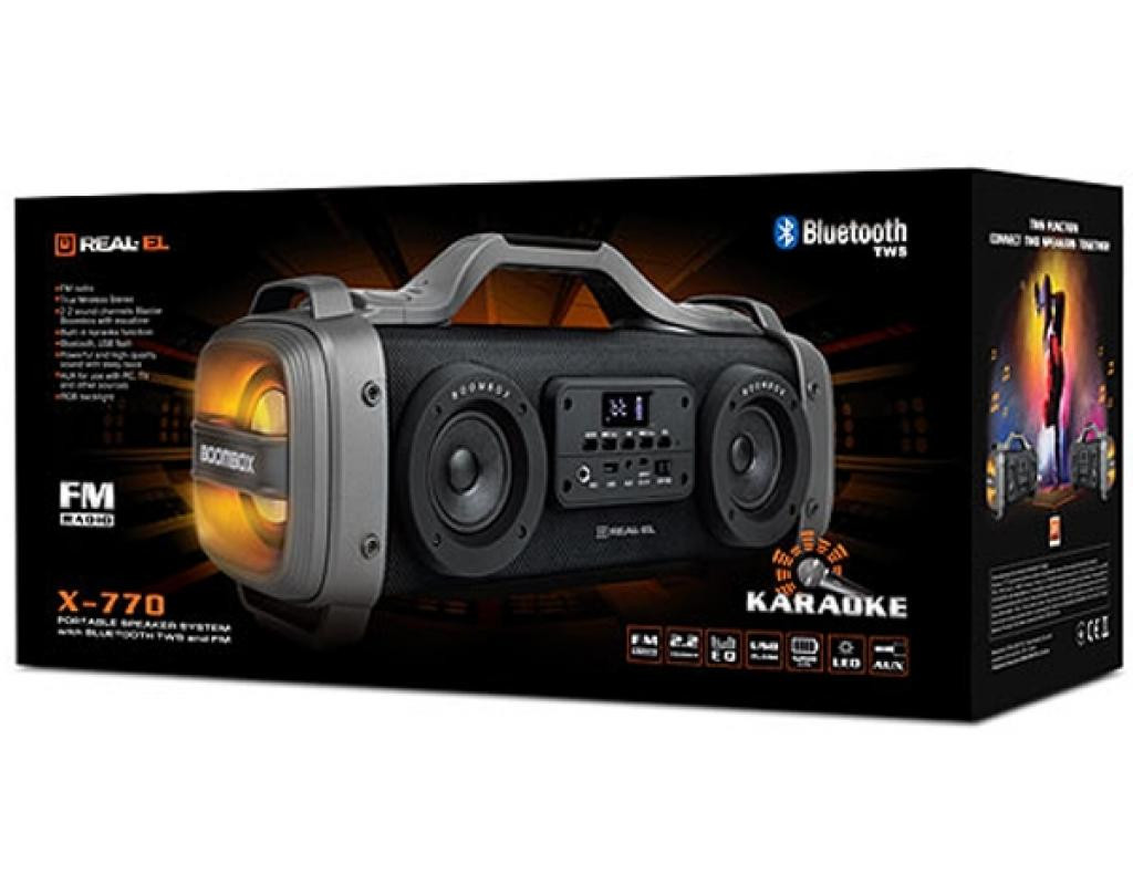 | Акустическая система REAL-EL X-770 Black — это идеальное решение для любителей качественного звука и ярких аудио-впечатлений. Эта портативная колонка сочетает в себе современный дизайн с чарующим RGB подсветкой, что добавляет настроение любой вечеринке или отдыху на природе. Благодаря 4 динамикам общей мощностью 60 Вт, вы получаете глубокое и насыщенное звучание, которое никого не оставит равнодушным. REAL-EL X-770 обеспечивает широкий спектр подключений, делая ее универсальной в использовании. Вы можете легко подключить любое устройство через Bluetooth или проводное соединение AUX. Также наличие USB-разъема позволяет прослушивать любимые треки с флеш-накопителей. Литий-ионный аккумулятор емкостью 5200 mAh обеспечивает длительную автономную работу, делая колонку идеальным спутником для активного отдыха. Для поклонников развлечений REAL-EL X-770 имеет встроенную функцию караоке с возможностью подключения микрофона и регулировкой эха, что превратит любой вечер в настоящее музыкальное шоу. FM-радио предоставляет возможность наслаждаться любимыми радиостанциями без лишних усилий. Кроме того, функция TWS позволяет соединить две такие системы для создания еще более мощного звукового эффекта, идеального для громких вечеринок. Система отличается звуковым оформлением 2.2 Blaster Boombox с профессиональным эквалайзером, который позволяет настраивать звук под собственные предпочтения, адаптируя его под разнообразные жанры музыки. Легкая, но прочная конструкция из высококачественного пластика и вес в 4.5 кг делают колонку удобной для транспортировки. REAL-EL X-770 Black — это не просто колонка, а настоящий центр развлечений, который сочетает в себе мощность, качество и функциональность. Она поможет создать незабываемую атмосферу в любой ситуации, позволяя вам наслаждаться каждым музыкальным моментом. Оцените все преимущества современной акустической системы и почувствуйте себя частью настоящего звукового шоу! |