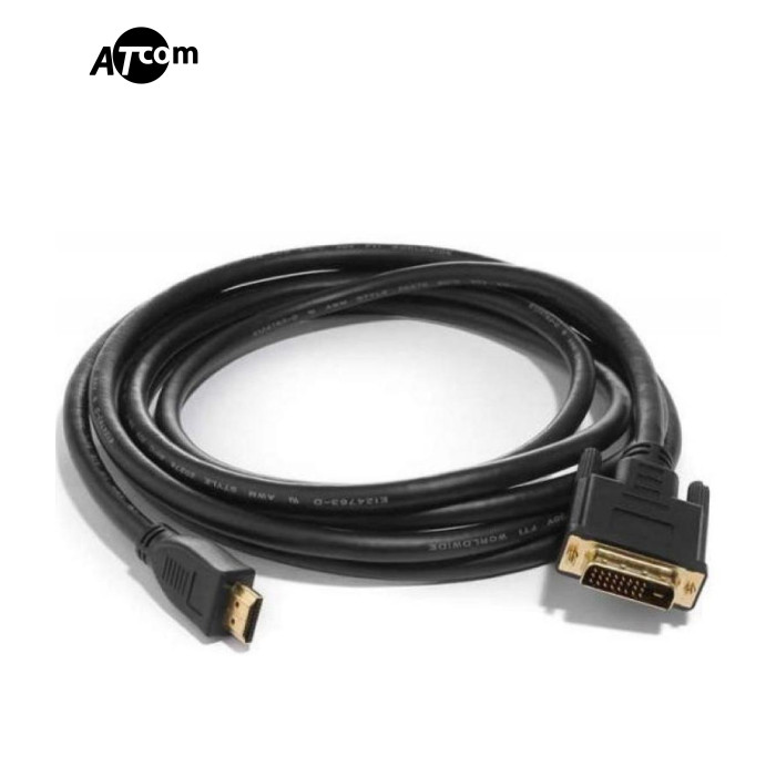 | HDMI to DVI 24pin, 5.0m Atcom (9154) - кабель для соединения источника видеосигнала (видеоадаптер, DVD-плэйер и др.) с интерфейсом HDMI и устройства вывода изображения (телевизор, монитор и др.) с интерфейсом DVI. Экранировка для снижения помех, позолоченные контакты. Кабель изготовлен из высококачественного полихлорвинила, жилы проводников отлиты из чистой бескислородной меди, а изолятор сделан из вспененного полиэтилена. |