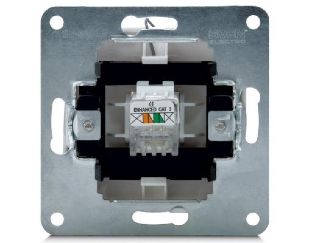 | Электроустановочное оборудование SVEN SE-60033 white (4895134781064)- розетка телефонная RJ11 скрытого типа белая. Основание из оцинкованной стали 1 мм. Подпружиненные крепежные зацепы для удобства монтажа. Улучшенная конструкция клемм для проводов. Тип разъема: RJ11. |