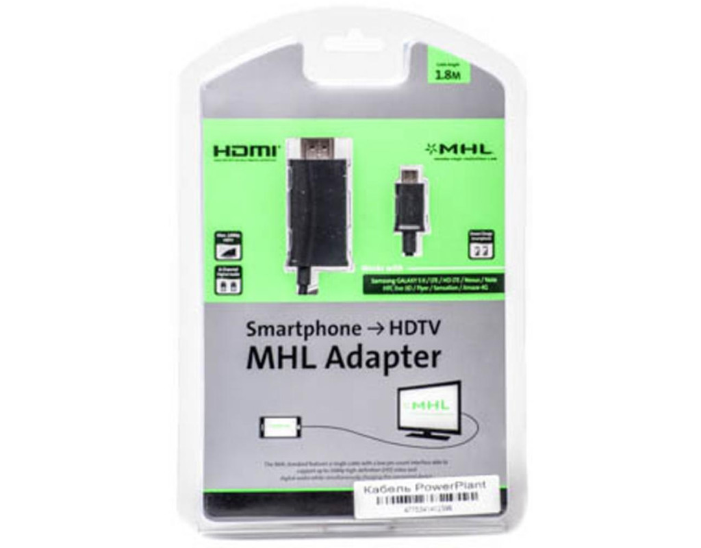Переходник micro USB to HDMI PowerPlant (KD00AS1239) используется для подключения к телевизору Samsung Galaxy S II i9100, HTC Sensation, HTC EVO 3D, HTC Flyer, дает возможность просматривать фото и видео в качестве FullHD 1080p с объемным звучанием. Также помимо стандартных функций, благодаря HDMI появилась передача потокового видео- и аудио сигналов со смартфона или либо же планшет на HDTV.