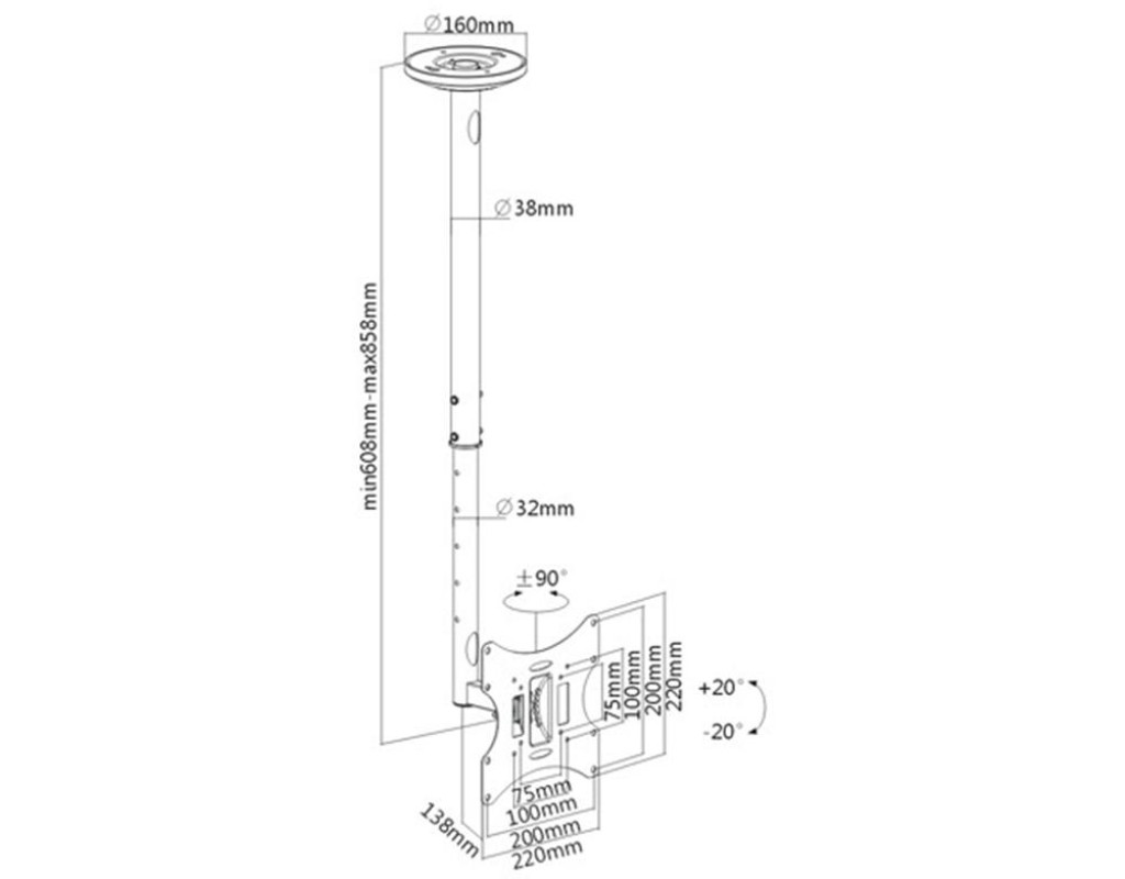 | ITech CELB 202R представляет собой наклонно-поворотное крепление для телевизоров с диагональю 26 - 42 " и весом до 30 кг. Наклонно-поворотный кронштейн для телевизора хорошо подойдет для помещений со сложной геометрией. Поместив кронштейн для телевизора на потолок, вы сможете изменять положение телевизора в вертикальной плоскости и сможете наблюдать экран под различными углами. Наклонно-поворотное настенное крепление для телевизора особенно удобно использовать в помещениях, где много солнечного света, который мешает комфортному просмотру любимого телеканала. |