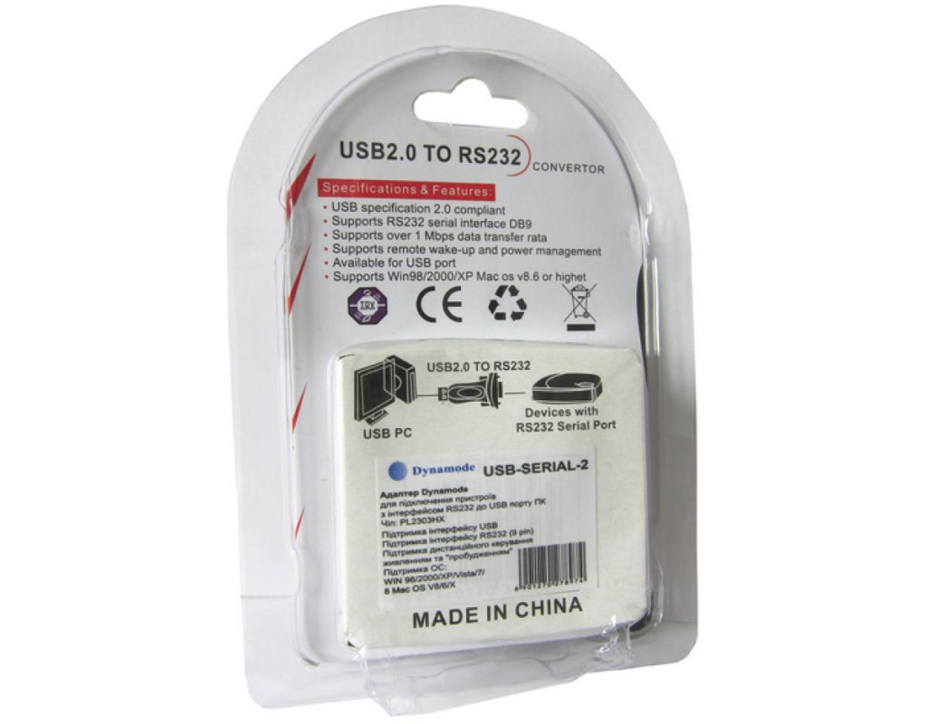 | Кабель для передачи данных USB to COM Dynamode (USB-SERIAL-2) для подключения COM (Serial, RS232)-устройств к USB-порту ПК, в комплекте драйвера и кабель USB AM-AF длиной 60 см, работает кабель с Win8 с драйверами. |
