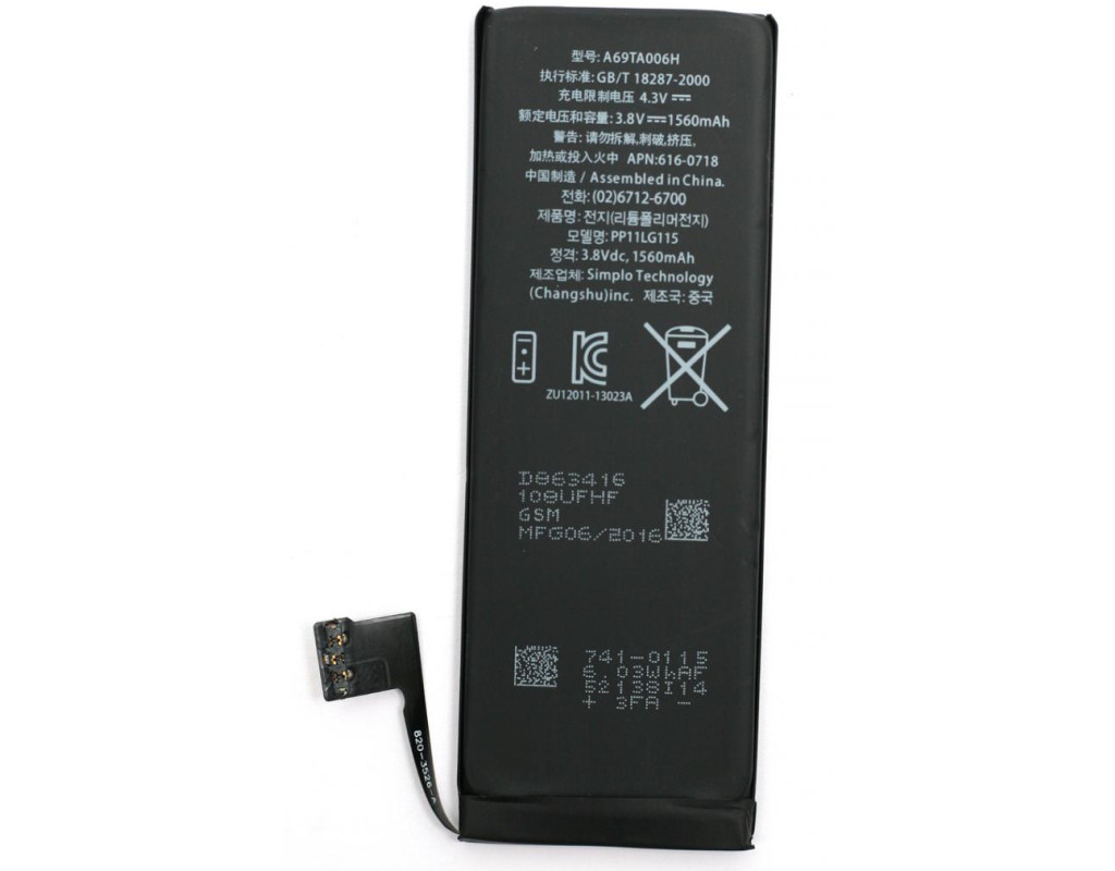 Назначение - для телефона, вид - стандартный, совместимость - Apple, модель - Apple iPhone 5S, Apple iPhone 5C, емкость - 1560mAh, тип аккумулятора - Li-Ion, напряжение - 3,8V, черный, High-copy (реплика)