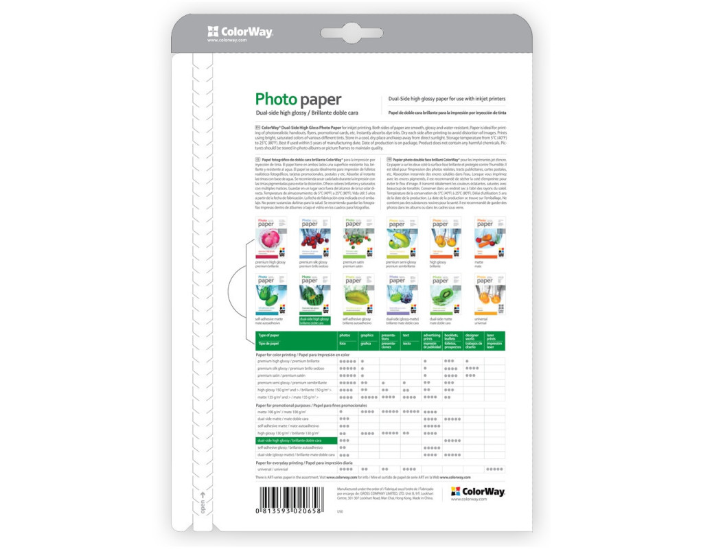| Для качественной печати фотографий нужно иметь хороший принтер, качественные чернила, и, конечно же, качественная фотобумага. Только качественная фотобумага способна в полной мере передать всю яркость цветов изображения, надолго сохранить фотографию яркой и свежей. Бумага ColorWay A4 (PGD155050A4) подходит для печати на всех струйных принтерах. Купить ColorWay A4 (ПГД155-50) - значит приобрести высококачественную глянцевую фотобумагу для печати фотографий полупрофессионального и профессионального уровня. Отпечатки обладают повышенной светостойкостью. |