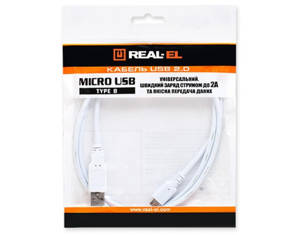Дата кабель USB 2.0 AM to Micro 5P 0.6m Pro white REAL-EL (EL123500022)