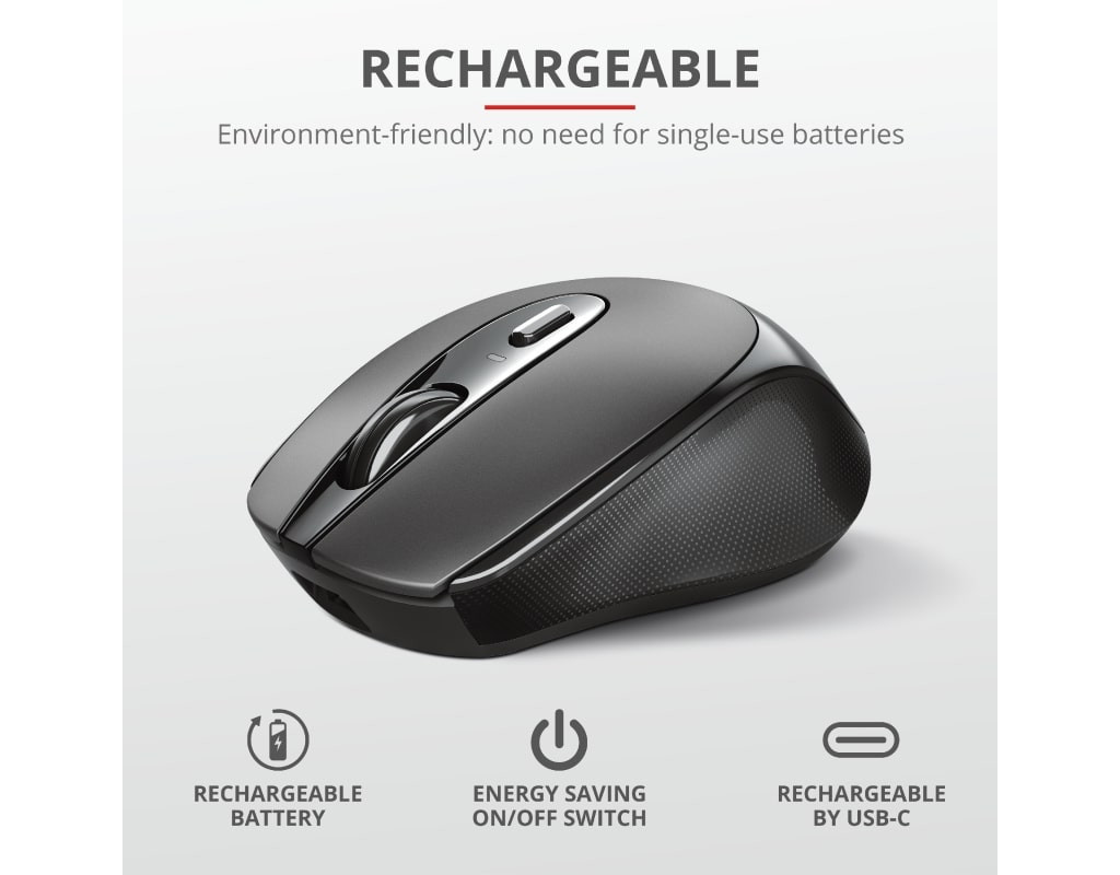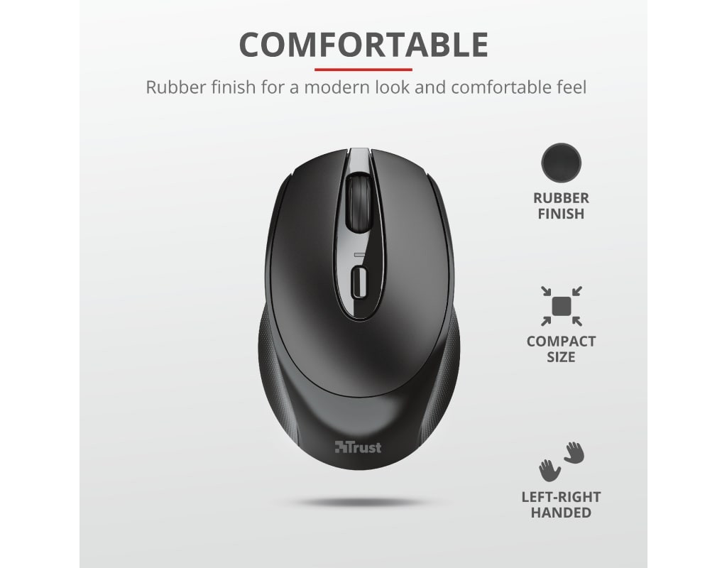 | Мышка Trust Zaya Rechargeable Wireless Black (23809) - это стильный и функциональный аксессуар для вашего ноутбука, который объединяет в себе современный дизайн и передовые технологии. Незаменимый выбор для тех, кто ценит удобство и качество, Trust Zaya обеспечивает плавную и точную работу благодаря своему оптическому датчику с максимальным разрешением 1600 dpi. Это позволяет устройству эффективно реагировать на ваши движения, независимо от поверхности. Беспроводное подключение через USB адаптер 2.4 ГГц делает Trust Zaya идеальным решением для мобильных пользователей, так как нет необходимости в дополнительных кабелях. Микроприемник USB удобно хранить в специальном углублении в корпусе мыши, что позволяет не беспокоиться о его потере. Ее компактный размер (105 x 68 x 38 мм) и легкий вес (70 г) идеально подходят для частых поездок, обеспечивая комфортное использование как правой, так и левой рукой. Встроенный перезаряжаемый аккумулятор делает Trust Zaya экологичной, избавляя вас от необходимости постоянной замены батареек. Заряжается она через современный порт USB-C, кабель для которого уже входит в комплект, обеспечивая быстрое и удобное пополнение энергии. Эта экологичная конструкция не только сохраняет ваши средства, но и заботится о окружающей среде. Мышка имеет 4 кнопки, одна из которых позволяет легко переключаться между разными уровнями чувствительности (800, 1200, 1600 dpi), позволяя настраивать устройство под ваши индивидуальные потребности. Резиновое покрытие не только придаёт ей современный вид, но и обеспечивает приятное на ощупь захват, повышая комфорт использования в течение длительного времени. Отдельным плюсом является наличие выключателя питания, который позволяет экономить заряд батареи в перерывах между использованием. Это делает Trust Zaya не только удобным, но и экономичным выбором, который долго прослужит вам без необходимости частой подзарядки. Выберите мышку Trust Zaya Rechargeable Wireless Black для своей работы или досуга, и вы получите стильный, надежный и экологичный инструмент, который подчеркнет вашу индивидуальность и заботу об окружающей среде. |