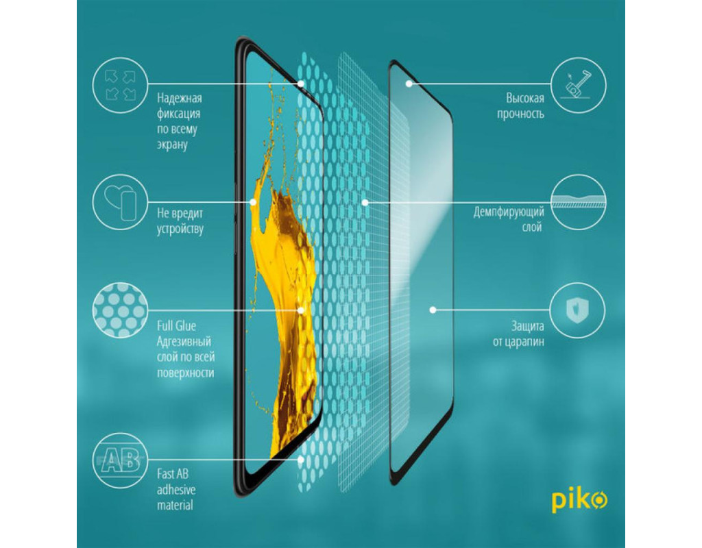• Клеевой слой нанесён по всему стеклу. Благодаря этому, обеспечивает надежную и сильную фиксацию всего стекла, а не только его краев. При необходимости такое стекло можно легко снять, без риска повредить экран или его покрытие.