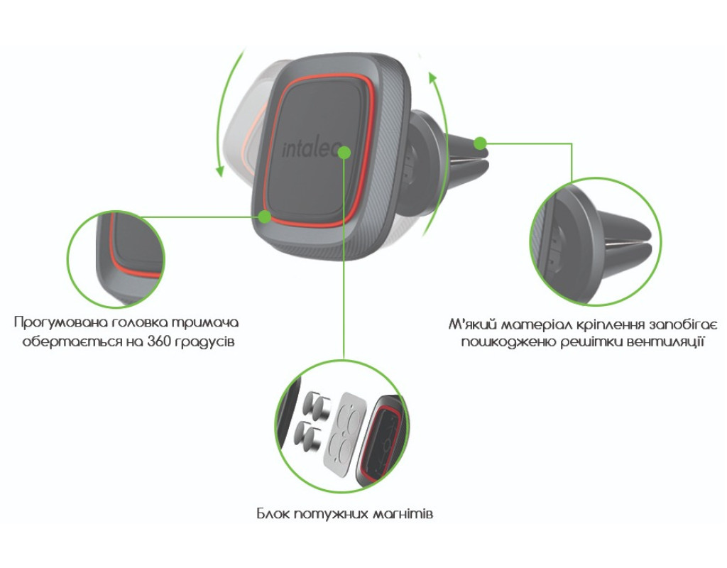 Автомобильный держатель Intaleo CM01GG Black – это компактный, надежный и простой в использовании магнитный держатель, разработанный для безопасной фиксации смартфонов и GPS-навигаторов в салоне автомобиля. Его основное преимущество – сверхбыстрая установка устройства: достаточно просто поднести смартфон к держателю, и встроенный магнит мгновенно зафиксирует его без лишних движений или настроек. Модель крепится к вентиляционной решетке авто, позволяющей удобно размещать смартфон в поле зрения, не закрывая обзор дороги. Надежное магнитное удержание обеспечивается с помощью металлических пластин, которые можно приклеить к задней крышке смартфона или внутренней части чехла. В комплект входят пластины разных форм и цветов, а также защитные пленки, предотвращающие контакт металла с корпусом устройства. Гибкая ножка с жесткой фиксацией позволяет регулировать положение устройства, сохраняя выбранную форму, а механизм поворота на 360° обеспечивает оптимальный угол обзора. Благодаря универсальной конструкции, держатель подходит для любых устройств с диагональю до 8 дюймов, не перекрывая доступ к кнопкам или портам. Этот держатель – идеальный выбор для тех, кто ценит функциональность, простоту и эстетику в автомобильных аксессуарах. Выполненный в сдержанном черном цвете, Intaleo CM01GG гармонично дополнит интерьер любого авто. Характеристики: