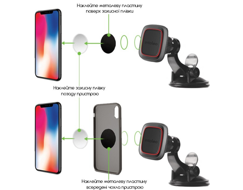 Благодаря магнитным свойствам смартфон можно легко и быстро фиксировать на автодержателе Intaleo CM01GP. Никаких лишних движений – достаточно просто приложить устройство к держателю. Компактный универсальный автодержатель Intaleo CM01GP со встроенным магнитом, который удобно и безопасно крепится на лобовое стекло. Устройство прочно и надежно фиксируется на держателе CM01GP с помощью металлической пластины, которую можно закрепить либо на самом устройстве, либо на его чехле. В комплект входят металлические пластины разного цвета и формы, а также защитные пленки соответствующей формы для использования вместе с пластинами. Круглые пластины годятся для смартфонов и небольших GPS-навигаторов. Прямоугольная, соответственно для устройств с большой диагональю экрана (6-8"). Дополнительные характеристики: