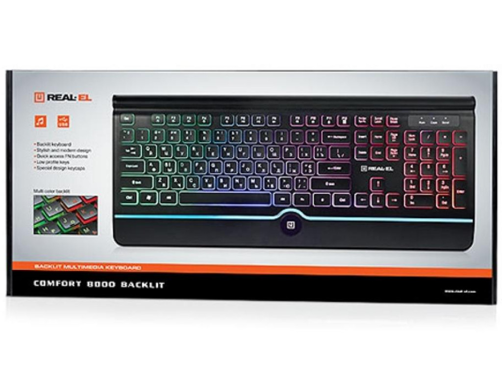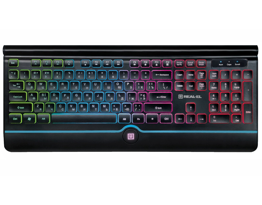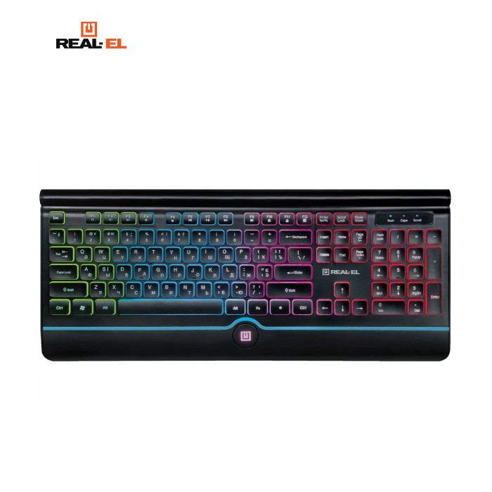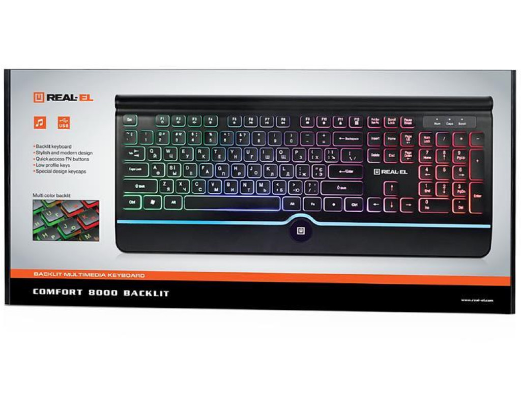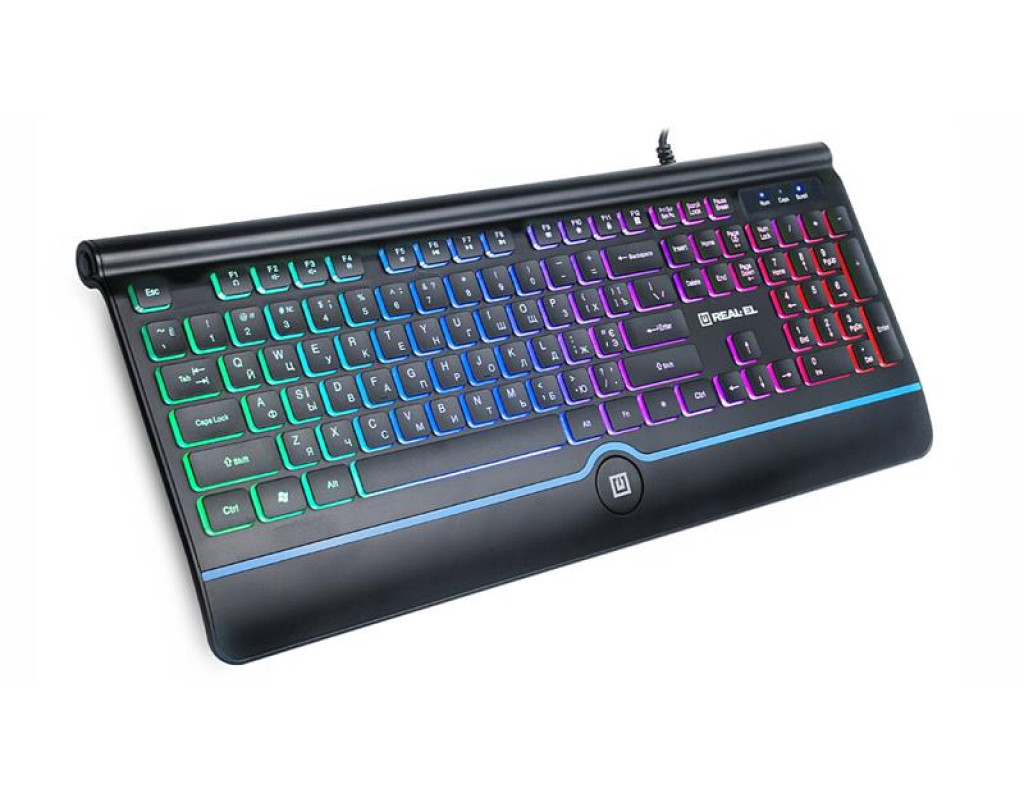 | Клавиатура REAL-EL 8000 Comfort Backlit Black воплощает исключительный баланс между функциональностью и стилем, что делает её идеальным выбором для современных пользователей, ценящих комфорт и надежность. Эта мультимедийная клавиатура может похвастаться мембранной конструкцией, обеспечивающей мягкое и тихое нажатие клавиш, повышая комфорт при длительной работе. Одной из ключевых особенностей является яркая многоцветная подсветка символов и боковых граней клавиш, что не только придаёт эстетическую привлекательность, но и упрощает использование клавиатуры в условиях недостаточного освещения. Компактные низкопрофильные клавиши созданы для быстрой и удобной работы, а специальный дизайн клавиш обеспечивает точность и лёгкость нажатия. Тип подключения через надёжный USB интерфейс делает эту клавиатуру универсальной для разных устройств, гарантируя быструю и стабильную реакцию на ваши команды. Кроме того, она является полноразмерной, обеспечивая полную раскладку для максимального удобства. Раскладка клавиатуры, включая русский, английский и украинский языки, делает её подходящей для пользователей с разнообразными потребностями. Также важно отметить, что REAL-EL 8000 отлично совместима с Mac OS, Linux, Windows, что делает её отличным выбором для любой операционной системы. Изящный и современный дизайн клавиатуры подчеркнут кнопками быстрого доступа FN, которые значительно ускоряют доступ к необходимым функциям без сложных комбинаций клавиш. Высокое качество сборки гарантирует долговечность, а стильный внешний вид — наслаждение от использования. REAL-EL 8000 Comfort Backlit Black — это оптимальный выбор для тех, кто хочет иметь надёжного помощника в работе и развлечениях, обеспечивая непревзойдённое качество, комфорт и эстетическое удовольствие. |