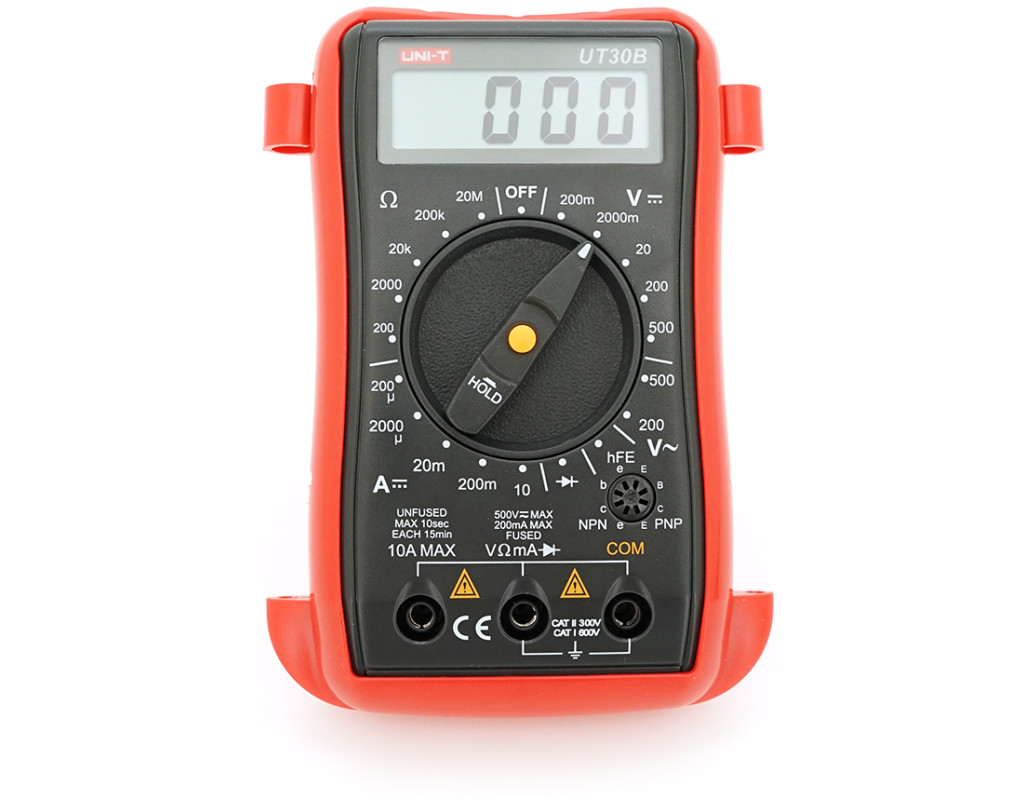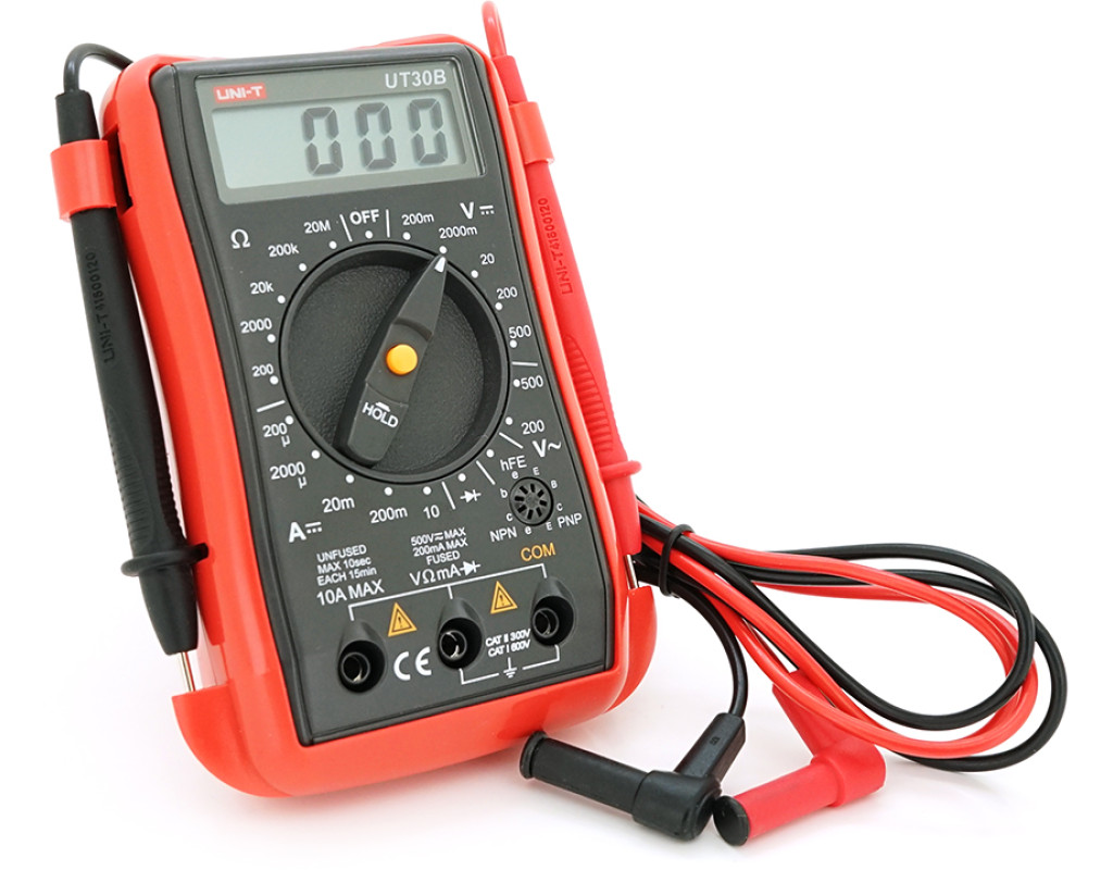 | Мультиметр UNI-T UT30B - надійний та функціональний інструмент, призначений для різних вимірювань у домашніх, професійних та наукових цілях. Він дозволяє проводити вимірювання постійного та змінного струму, напруги, опору, а також проводити тестування діодів та транзисторів. Зручний у використанні та компактний за розмірами мультиметр UT30B стане незамінним помічником як для електротехніків, так і для любителів електроніки. Функції вимірів: - Постійний струм - Постійна напруга - Змінна напруга - Опір - Тестування діодів - Коефіцієнт посилення транзисторів - Сплячий режим - Утримання даних - Індикатор низького заряду батареї Технічні характеристики: - Екран: 1999-розрядний РК-дисплей, 48×16 мм - Живлення: 9 В батарейка (6F22) - Габарити: 130х74х41 мм - Вага: 160 г Вимірювання: - Постійна напруга (DC): 200 мВ / 2000мВ / 20 В / 200 В / 500 В; ±(0.5%+2) - змінна напруга (AC): 200 В / 500 В; ±(1.2%+10) - Постійний струм (DC): 200 мА / 2000 мА / 20мА / 200 мА / 20А; ±(1%+2) - Опір: 200 Ом / 2000 Ом / 20кОм / 200 кОм / 20 мОм; ±(0,8%+2) Спеціальні функції: - Вибір діапазону: Ручний - Тестування діодів: Так - Тестування транзисторів: Так - Функція утримання даних: Так - Індикація низького заряду батареї: Так - Автовідключення («сплячий» режим): Так Комплектація: - Мультиметр UT30В – 1 шт. - Вимірювальні щупи – 1 пара - Батарея – 1 шт. - Інструкція з експлуатації – 1 шт. |