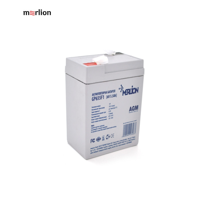 | Акумуляторна батарея MERLION AGM GP655F1 6 V 5.5Ah ( 70 x 47 x 100 (105)), 0.75 kg, Grey, Q20 / 2400 |
