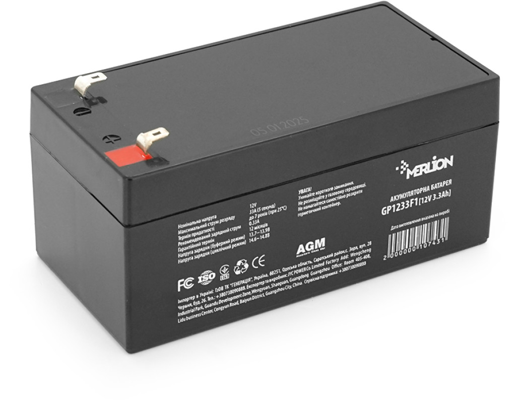 | Акумуляторна батарея MERLION AGM GP1233F1 12 V 3,3Ah ( 134 x 66 x 60 (65) ) Q10 |