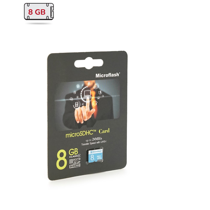 | Технічні характеристики: Карта пам`яті Microflash Об`єм пам`яті 8 Гбайт Тип картки Micro SD Швидкість передачі даних 28MB / s, Стандарт швидкості class10 Робоча температура: - 20 + 60 ℃ |