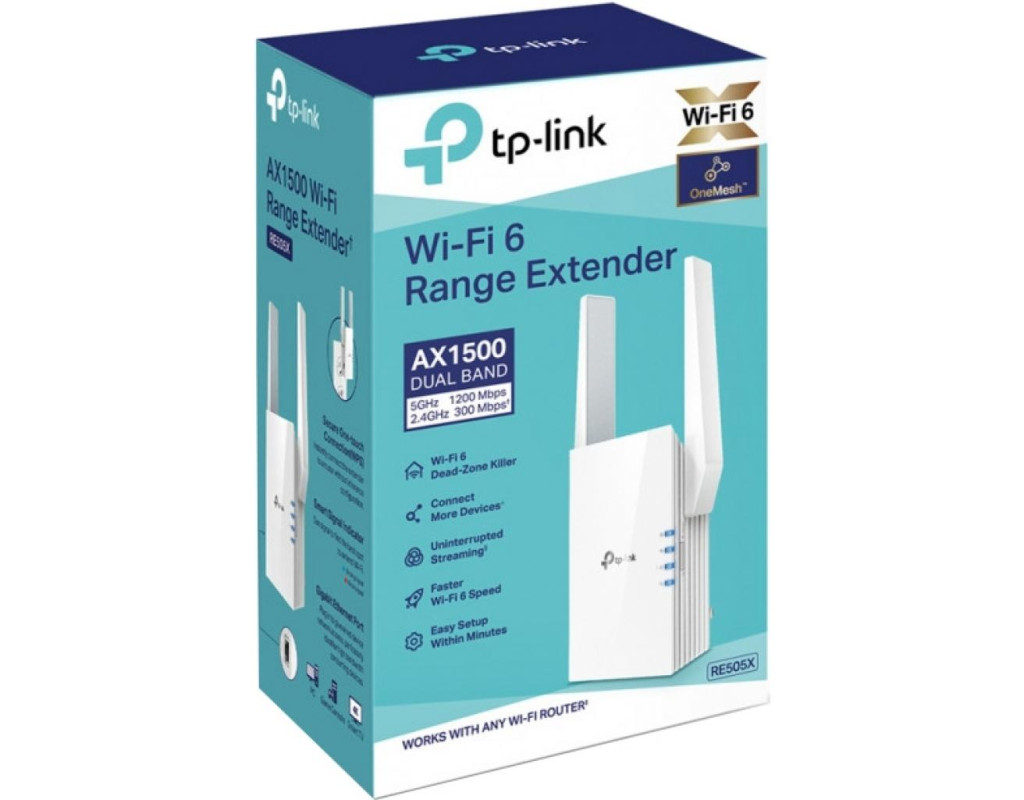 RE505X оснащен новейшей беспроводной технологией Wi-Fi 6. Поддержка OneMesh, режим ТД — создайте новую точку доступа Wi-Fi, чтобы расширить возможности проводной сети с поддержкой Wi-Fi.