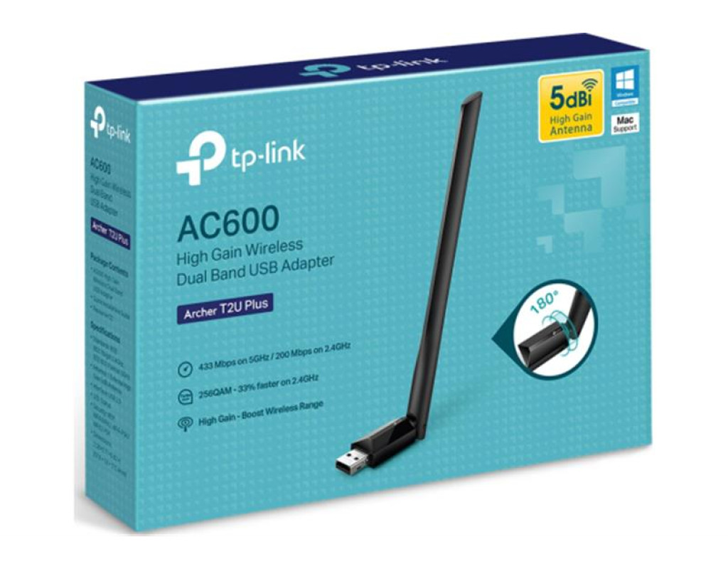 | Быстрый двухдиапазонный адаптер для стабильного Wi-Fi Archer T2U Plus принимает сигнал Wi-Fi в двух диапазонах. Технология 256QAM позволяет увеличить скорость передачи данных на 33% в диапазоне 2,4 ГГц – со 150 Мбит/с до 200 Мбит/с. Скорость до 433 Мбит/с на 5 ГГц отлично подходит для просмотра потокового видео и онлайн-игр без задержек, а скорость до 200 Мбит/с на 2,4 ГГц – для просмотра веб-страниц. Увеличенное покрытие сети Archer T2U Plus оснащён 5 дБи антенной высокого усиления для максимальной скорости приема и передачи сигнала. Используйте стабильный и надёжный Wi-Fi по всему дому. Регулируемая антенна Направляйте антенну в любую сторону для улучшения качества соединения и производительности. |