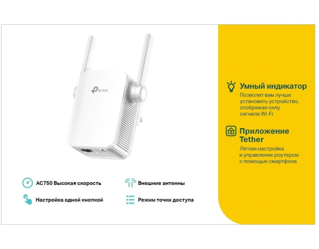 Ретранслятор TP-Link RE205 AC750, 1хFE LAN (RE205)