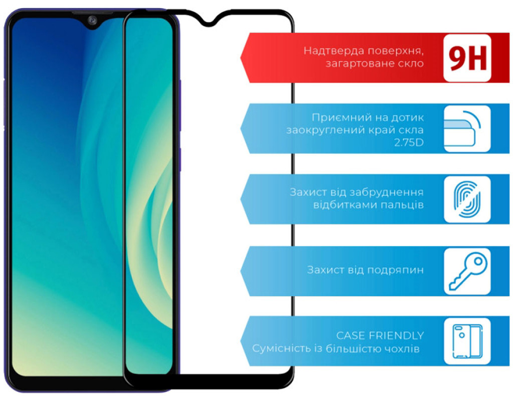 • Уровень прочности: 9H. Минимизирует риск повреждения передней панели мобильного устройства при повседневном использовании.