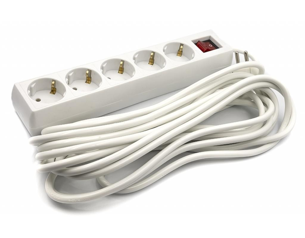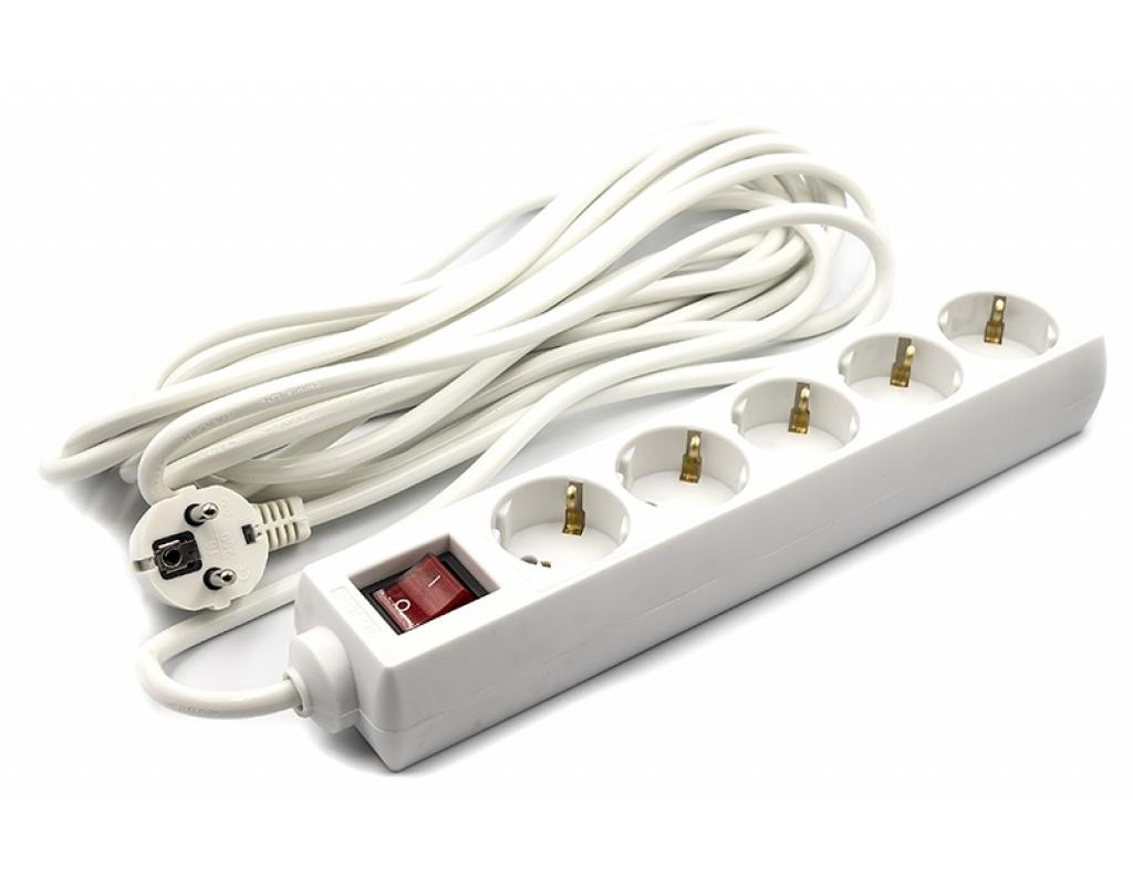Количество розеток - 5, Длина кабеля - 7 м, контакт заземления, с общим выключателем, Суммарная мощность подключенной нагрузки - ≤ 1750 Вт, OEM, Цвет - белый