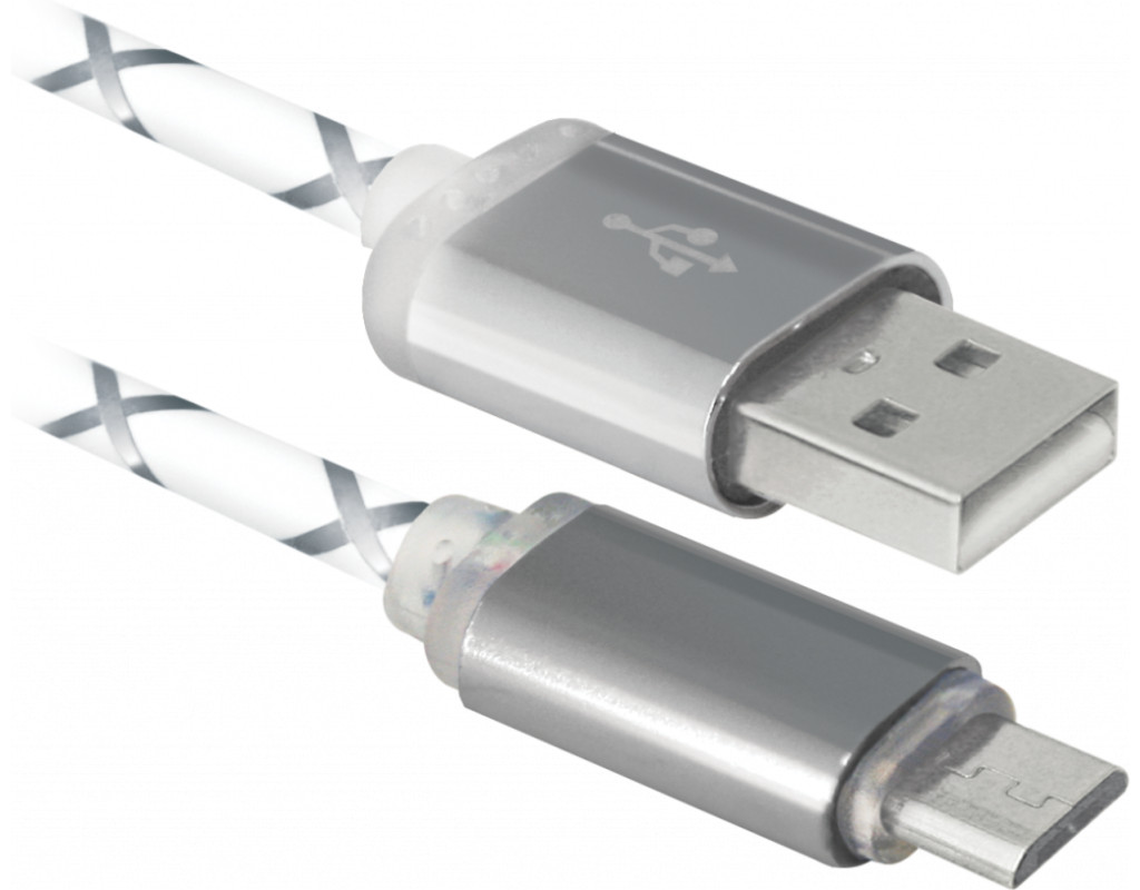 Дата кабель Defender USB08-03LT USB - Micro USB, GrayLED backlight, 1m