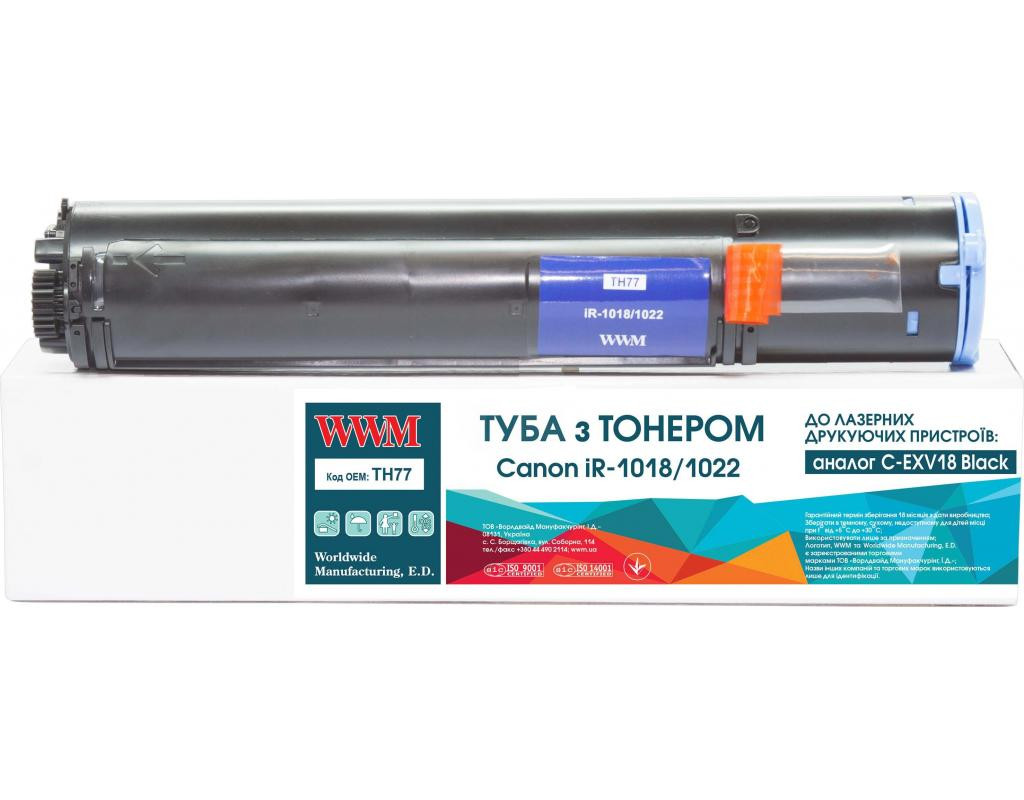 Тонер-картридж WWM Canon C-EXV18 (TH77) Картриджи WWM - это совместимые картриджи для лазерных печатающих устройств. Отвечают высоким требованиям стандартов качества. Благодаря высокому уровню надежности и доступной цене, картриджи WWM являются отличным вариантом для вашего лазерного принтера, факса или копира. При изготовлении картриджей используются новые комплектующие и высококачественный тонер. Благодаря идентичным габаритам, картридж идеально становиться на свое место и восстанавливает работу устройства. Совместимые картриджи позволяют сэкономить огромные средства, особенно при больших объемах печати. Лазерный картридж производства компании WWM. Компания WWM разрабатывает и занимается производством всех расходных материалов, которые необходимы для печатающих устройств и копировального оборудования: сменные картриджи, чернила, тонеры, ленты и др. |