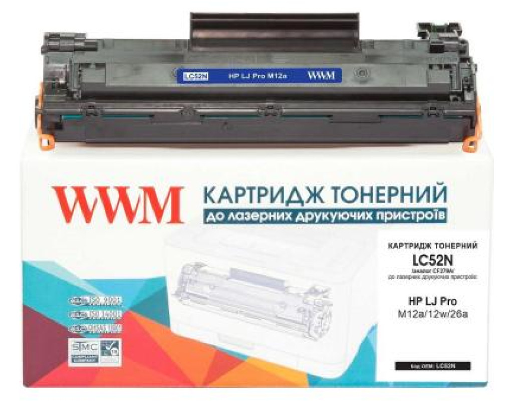 Компания WWM занимается производством расходных материалов для принтеров и МФУ. Ассортимент компании довольно классический, относительно выбранного направления деятельности. Краски для струйных принтеров, тонер, бумага, системы непрерывной подачи чернил, картриджи и чистя средства – WWM готова к любому вызову в своей отрасли. Миссия компании WWM - наиболее полное удовлетворение потребности пользователей в совместимых и оригинальных расходных материалах к принтерам и копировальным аппаратам. Высокое качество продукции, долговременное сотрудничество, гибкость в работе с партнерами, – вот основные принципы, которыми руководствуется коллектив WWM. Картридж WWM для HP LJ Pro M12a/12w/26a аналог CF279A (LC52N) - картридж тонерный для принтеров компании HP. Картридж заправленный тонером черного цвета, которого хватит на распечатку 1000 страниц. Отличается высоким уровнем качества и не требует много усилий для установки. |