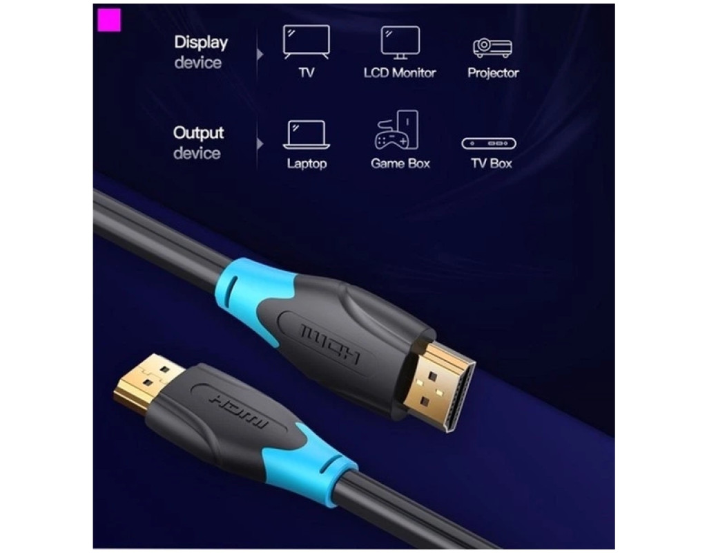 | Кабель Vention HDMI-HDMI, v2.0 with Ethernet 19M/19M – это цифровой кабель для подключения источника видеосигнала и устройства отображения. Канал Ethernet позволяет нескольким устройствам работать в сети Ethernet без необходимости подключения дополнительных проводов, а также напрямую обмениваться контентом, на скорости до 100 Мбит/сек. Кабель имеет пропускную способность до 18 Гб/сек, 3D-возможности, а также поддержку более чем 8 каналов аудио. Наличие обратного канала аудио устраняет необходимость в отдельном проводе для передачи звука в ресивер с телевизора или другого устройства, которое является одновременно источником аудио и видео. |