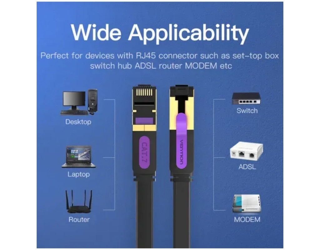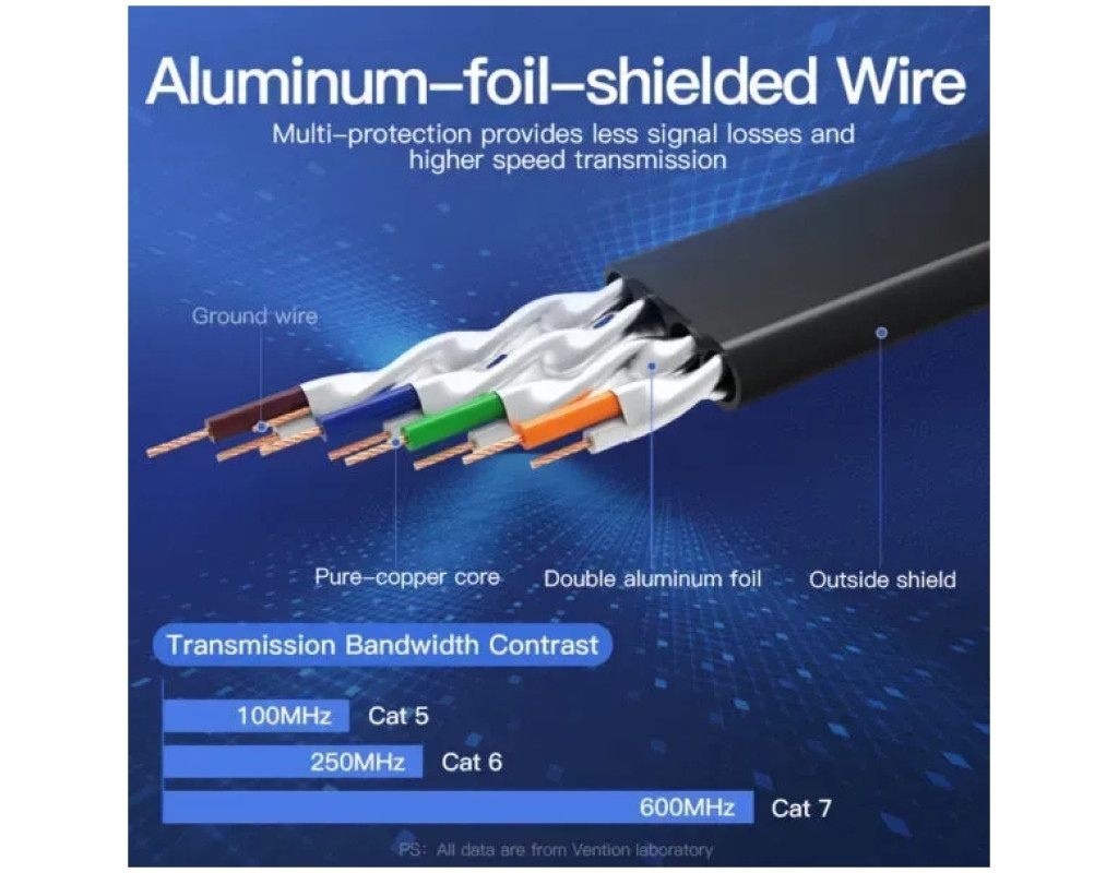 Кабель категории САТ 7 Сетевой кабель Vention Ethernet RJ45 САТ 7 предназначен для коммутации компьютерных Ethernet-сетей со стандартами 10ВАSЕ-Т (10 Мбит/сек), 100ВАSЕ-Т(х) (100 Мбит/сек), 1000ВАSЕ-Т (х) (1 Гбит/сек) ), 10GBASE-Т (10 Гбит/сек). 10-гигабитный Ethernet (10GbЕ) Кабель способен обеспечить скорость передачи данных в сетях Ethernet до 10 Гбит/с при использовании стандартных коннекторов 8Р8С. Изоляция кабеля PVC LSZH Внешняя оболочка кабеля изготовлена из поливинилхлорида (РVС) с добавлением мела. Для изготовления оболочки используются полимеры, которые не распространяют горение при групповой прокладке и не выделяют при нагревании галогены (такие кабели маркируются аббревиатурой LSZH: low smoke zero halogen - малой дымности, не выделяющий галогенов. Кабель разрешается прокладывать и использовать в закрытых областях, где могут проходить воздушные потоки системы кондиционирования и вентиляции. Позолоченные контакты Патч-корд оснащен с двух сторон разъемами-коннекторами RJ45, которые покрыты слоем золота и меди для превосходной передачи данных и долговечности в эксплуатации. Широкая совместимость Кабель можно использовать с различными устройствами как в домашних, так и офисных помещениях. |