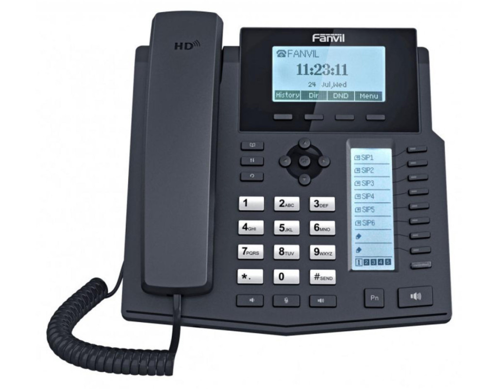 Fanvil X5U - это профессиональный IP-телефон, имеющий цветной дисплей, разъем для наушников, порт EHS для беспроводных наушников, встроенный Bluetooth, USB-разъем, 30 клавиш с ЖК-этикеткой, HD-аудио, 2 Gigabit PoE LAN порта. IP-терминалы Fanvil X5U поддерживают дополнительные адаптеры Wi-Fi для использования в локальных средах, обслуживаемых проводной сетью. IP-телефон (стандарт SIP) Fanvil X5U может использоваться с линиями VoIP от IP-провайдеров на основе Asterisk (Yeastar, Zycoo, grandstream, 3CX, Freepbx и т. д.), также может использоваться на виртуальном коммутаторе. Каждая программируемая функциональная клавиша снабжена ЖК-этикеткой (маленький ЖК-дисплей рядом с клавишей). 5 страниц по 6 клавиш, всего 30 программируемых функциональных клавиш. Телефон Fanvil X5U помогает сохранить окружающую среду, экономить на использовании бумажных этикеток и всегда держать телефон в чистоте (избегая стертых или рукописных этикеток ручкой или карандашом). Он также может использоваться в качестве терминала для виртуального коммутатора и на традиционных телефонных станциях с лицензиями на расширение SIP. IP-телефон Fanvil X5U имеет большой цветной дисплей с подсветкой, который помогает пользователю в повседневных операциях по управлению внутренними и внешними вызовами, дополняя его сообщениями помощи и интерактивными клавишами с активацией функций, предлагаемых дисплеем. Благодаря меткам на ЖК-дисплее (в сочетании со светящимся светодиодом, который также сообщает о состоянии ресурса в сочетании с кнопкой на ЖК-дисплее), конфигурация клавиш проста и практична. Программируемая кнопка на Fanvil X5U настраивается с помощью программного обеспечения. Что происходит, если активирована функция (например, изменяется статус с свободного на занятый добавочный номер), связанная с одной из различных страниц ЖК-этикеток? Fanvil X5U предупреждает, включая светодиод, предлагая вам сменить страницу, если вы хотите просмотреть событие, связанное с ключом / меткой. Это VoIP телефон для требовательных пользователей, которым необходимо иметь много прямых вызовов под рукой, чтобы сделать работу на телефоне практичной, интуитивно понятной и быстрой. Разъем, предназначенный для подключения профессиональной телефонной гарнитуры, еще больше повышает удобство работы, освобождая руки человеку, использующему ее, а также обеспечивает правильное положение на рабочем месте, повышая комфорт и производительность. Особенности: Встроенный Bluetooth Поддерживает Bluetooth наушники и Bluetooth спикерфоны 2 гигабитных сетевых порта (10/100/1000) 5 страниц из 6 клавиш с ЖК-дисплеем Функция SIP Hot Spot для соединения со смартфоном (программным телефоном) или другим стационарным IP-телефоном Большой 6-строчный цветной дисплей с подсветкой ЖК-этикетки с подсветкой Программные клавиши на дисплее Ключи с предварительно настроенными функциями Поддерживает до 6 учетных записей SIP RJ9 стандартный штекер для наушников 1 USB-порт для дополнительного WiFi-донгла Поддерживает EHS (электронный донгл, EHS20 для Jabra и Sennheiser или APD80 для Plantronics) Голосовые кодеки: G.711a / u, G.723.1, G.726-32K, G.729AB, AMR, iLBC, Opus Голосовой Кодек HD: G.722, AMR-WB HD Audio (дискретизация ADC/DAC 16 кГц) HD на микрофоне и динамике (0: 7 кГц) VPN: L2TP (базовый незашифрованный) / OpenVPN IPV4, IPV6 Эхоподавление Полнодуплексный голосовой набор DTMF, информация SIP, RFC2833 Горячая линия 100 имен в журнале звонков Каталог XML / LDAP 2000 записей в телефонной книге Черный список и белый сп