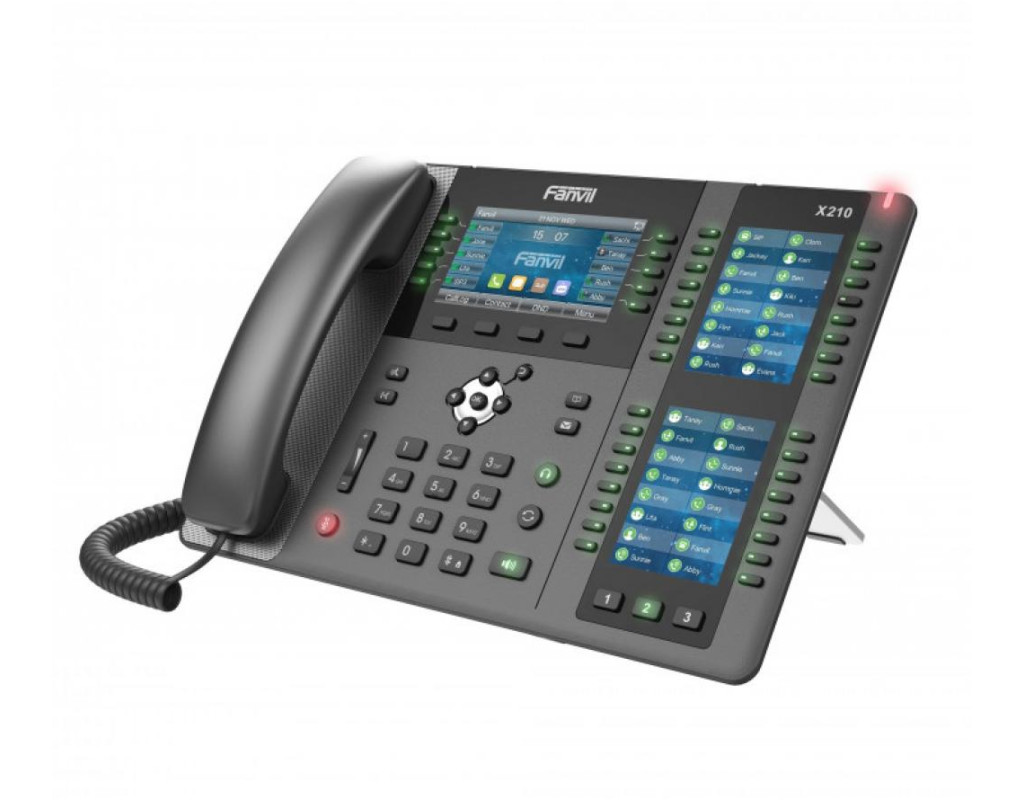 Fanvil X210 - это корпоративный IP-телефон высокого класса для пользователей, которым необходим доступ к гибким и расширенным функциям для обработки средних и больших объемов вызовов в повседневной работе. Благодаря 10 клавишам DSS на 4,3-дюймовом главном цветном дисплее, до 96 клавишам DSS (32 физических) на боковых цветных дисплеях 2 × 3,5 дюйма, X210 имеет до 106 клавиш DSS с BLF. На аппарате функция быстрого набора, функции группового вещания и т. д. Телефон поставляется с HD-аудио, встроенным Bluetooth, возможностью подключения к Wi-Fi, поддержкой EHS, двойной гигабитной сетью, PoE, IP-камерой / SIP-домофоном, обеспечивая высокую производительность с этими расширенными функциями. Высокопроизводительный корпоративный IP-телефон X210 обеспечивает удобство и производительность. 4,3" основной цветной дисплей Клавиши DSS, элегантный дизайн, большой 4,3-дюймовый цветной дисплей с высоким разрешением и два удобных 3,5-дюймовых цветных дисплея делают этот IP-телефон более интуитивным, чем когда-либо. Аудио в формате HD для громкой связи. Благодаря новой поддержке Opus и большему размеру аудиопотока, обеспечивается сильный эффект низких частот. Громкоговоритель имеет полное покрытие сети, обеспечивая кристально чистое, реалистичное голосовое общение. Унифицированный дизайн с двумя боковыми дисплеями До 106 клавиш DSS Удобная работа на X210 с двумя 3,5-дюймовыми дисплеями с клавишами DSS, когда не нужно добавлять внешние модули расширения. С помощью трех кнопок переключения страниц на боковых дисплеях можно установить до 96 клавиш DSS (32 физических) и плюс 10 клавиш DSS на главном дисплее. Богатый функционал расширения X210 предлагает множество подключений устройств, включая Wi-Fi (через донгл Wi-Fi), встроенный Bluetooth, гарнитуру EHS, порт USB для зарядки смартфона или других устройств. Два гигабитных порта позволяют подключать к телефону настольный компьютер или ноутбук - нет необходимости в дополнительных кабелях. Делайте HD видеозвонки с IP-камеры / SIP-видео Интеграция домофона на X210, оснащенного видеокодеком H.264, позволяет интегрироваться с вашей IP-камерой или видеодомофоном Fanvil SIP, чтобы вы могли вести двустороннюю беседу с посетителями и открыть дверь с вашего IP-телефона X210. Сделай свое решение с Hotspot X210 можно использовать в качестве мини-АТС, чтобы создать небольшое решение для связи и безопасности. Подключите устройства Fanvil, такие как VoIP телефон, SIP домофон, SIP динамик, к IP-телефону X210 с помощью сетевых подключений, образуя небольшую свою систему через функцию точки доступа X210, при этом нет необходимости покупать УАТС. Обзор возможностей 20 SIP линий, 3-сторонняя конференция, точка доступа HD аудио на громкой связи и телефоне 4,3 "основной цветной дисплей Встроенный Bluetooth 2 × 3,5 "боковых цветных дисплея для клавиш DSS До 106 клавиш DSS (42 трехцветных физических клавиши) Двойные гигабитные порты, интегрированный PoE Wi-Fi подключение (через донгл Wi-Fi) Поддержка EHS гарнитуры Поддержка приема видеозвонков с видеокодеком H.264 Подставка с 2-мя регулируемыми углами 40 и 50 градусов Совместимость с основными платформами: 3CX, Asterisk, Broadsoft, Elastix, Metaswitch и т. д. |