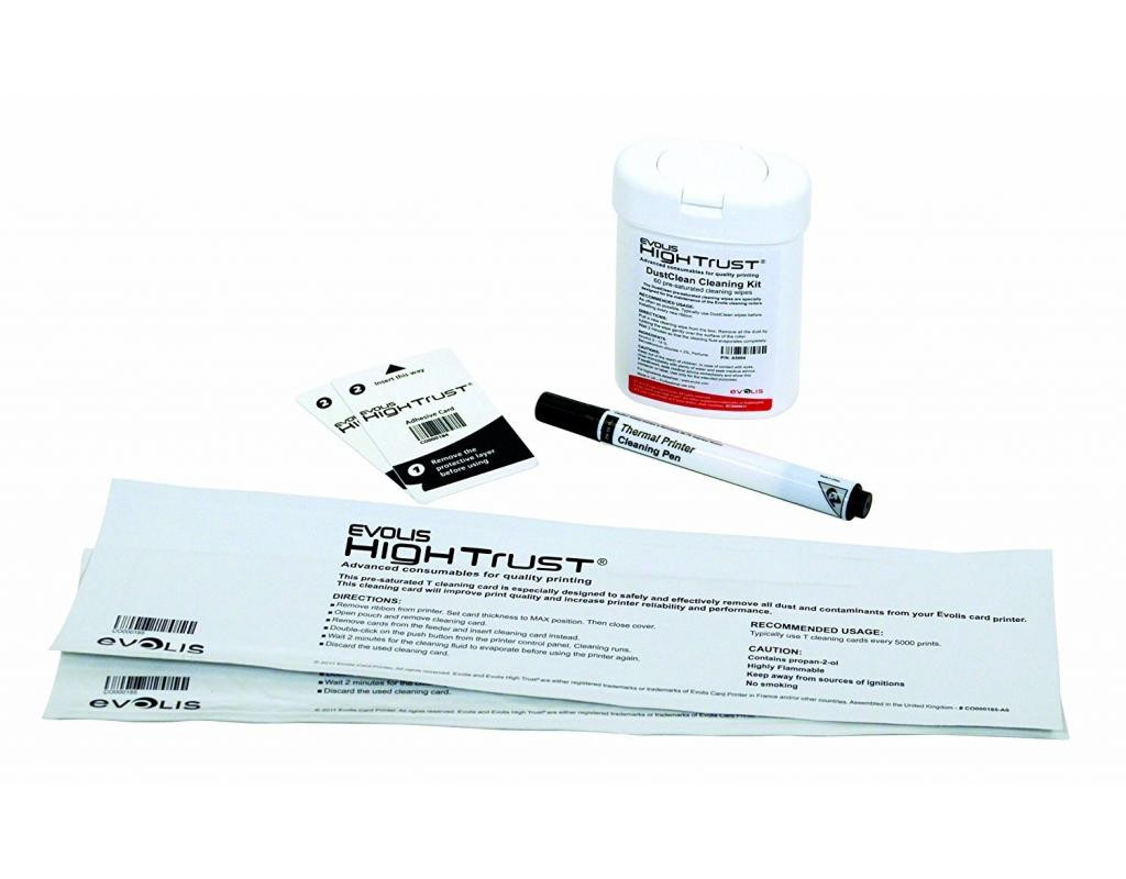 Набор для чистки принтера Evolis Cleaning Kit ACL002. Комплектация: 2 влажные карты типа 'T', 2 клейкие карты, чистящий карандаш, 60 салфеток. Для принтеров серий: Securion, Quantum2, Primacy, Zenius, Pebble4, Dualys3, Tattoo2. |