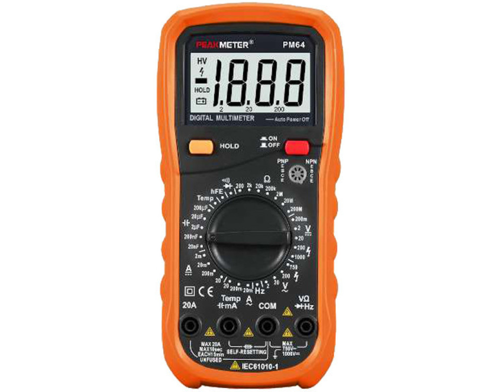 Цифровой мультиметр PROTESTER PM64 имеет все задатки для того, чтобы стать основным прибором прокладчика энергосетей различной сложности, а также профессиональных и частных мастеров-радиолюбителей. Устройство отличает великолепная функциональность, которая позволяет задействовать его в измерении различных параметров электроцепей в очень широких диапазонах. Мультиметр PM64 предназначен для измерений таких величин, как: