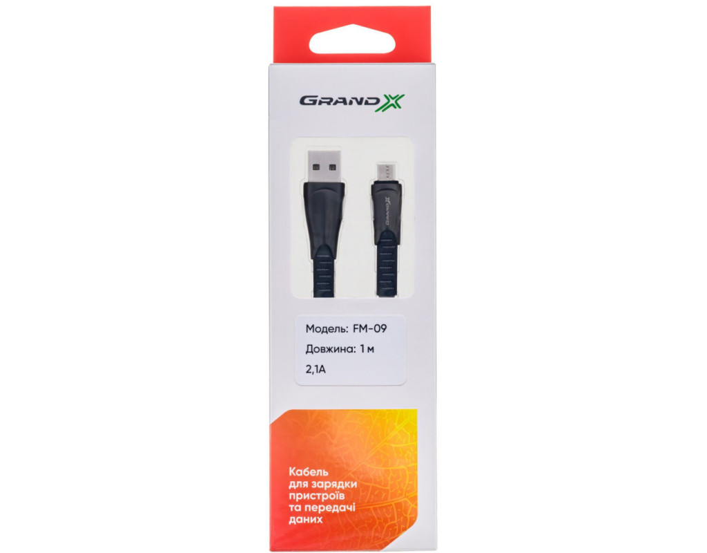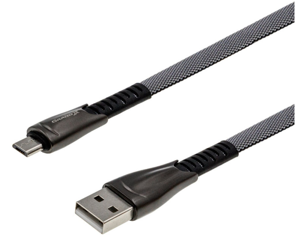 Дата кабель USB 2.0 AM to Micro 5P 1.0m black Grand-X (FM09)