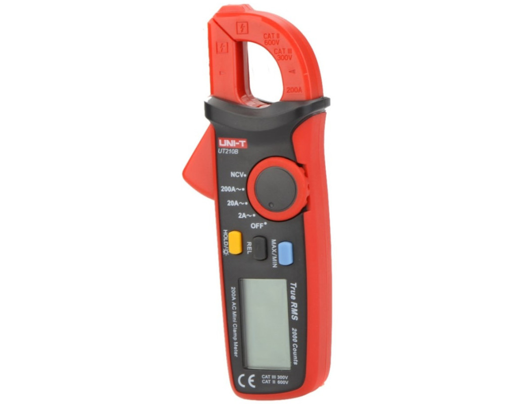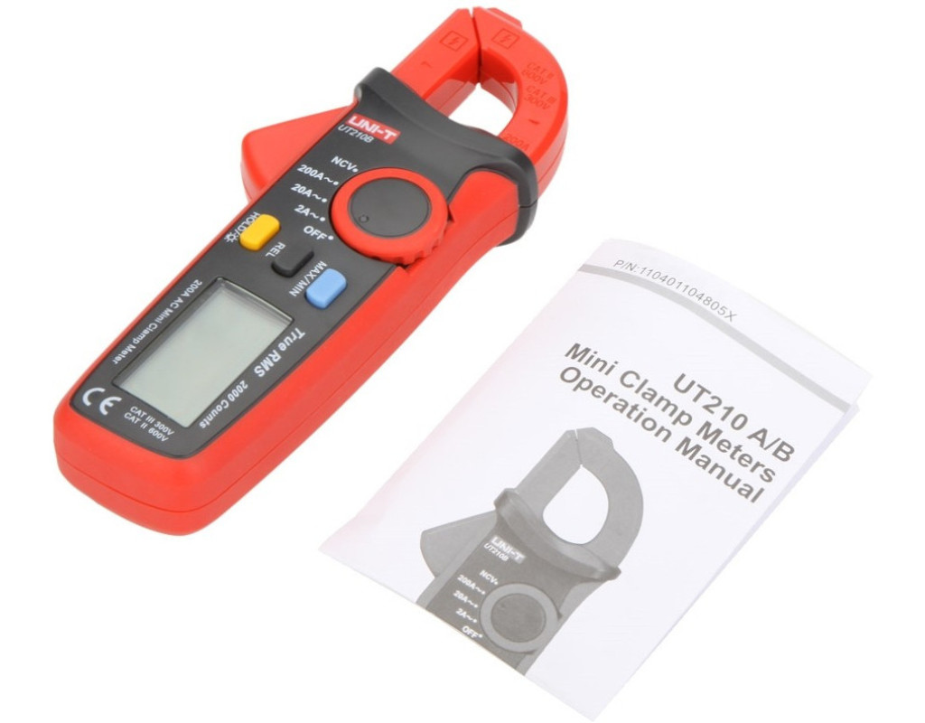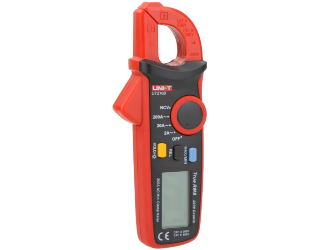 Токовые клещи UNI-T UT210B - хороший инструмент, позволяющий бесконтактно и точно измерять переменный ток. Преимуществом клещей является возможность не выключать оборудование и не обесточивать электросеть в процессе измерения тока, особенно это полезно в наладке как бытовых, так и промышленных цепей. Технические характеристики токовых клещей UNI-T UT210BПрибор обладает функцией детектирования скрытой проводки (NCV), позволяющей легко найти провод под напряжением на дистанции до 30 мм. Токовые клещи UNI-T UT210B разработаны специально для походных условий, так как представляют собой очень компактное, поразительно легкое устройство (вес всего 160 г). Эта особенность не может быть оставлена без внимания при проведении всевозможных ремонтных работ. Инструмент поддерживает True RMS, технологию, обеспечивающую точное определение значений, просчитывая среднеквадратические величины. Токоизмерительные клещи UNI-T UT210B позволяют работать в плохую видимость благодаря подсветке дисплея. Кнопка HOLD фиксирует измеряемые показания, а индикация низкого заряда поможет вовремя заменить элемент питания. Особенностью UT210B среди своей серии есть наличие NCV, MAX/MIN значений и REL (режима относительных измерений).