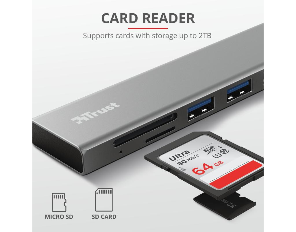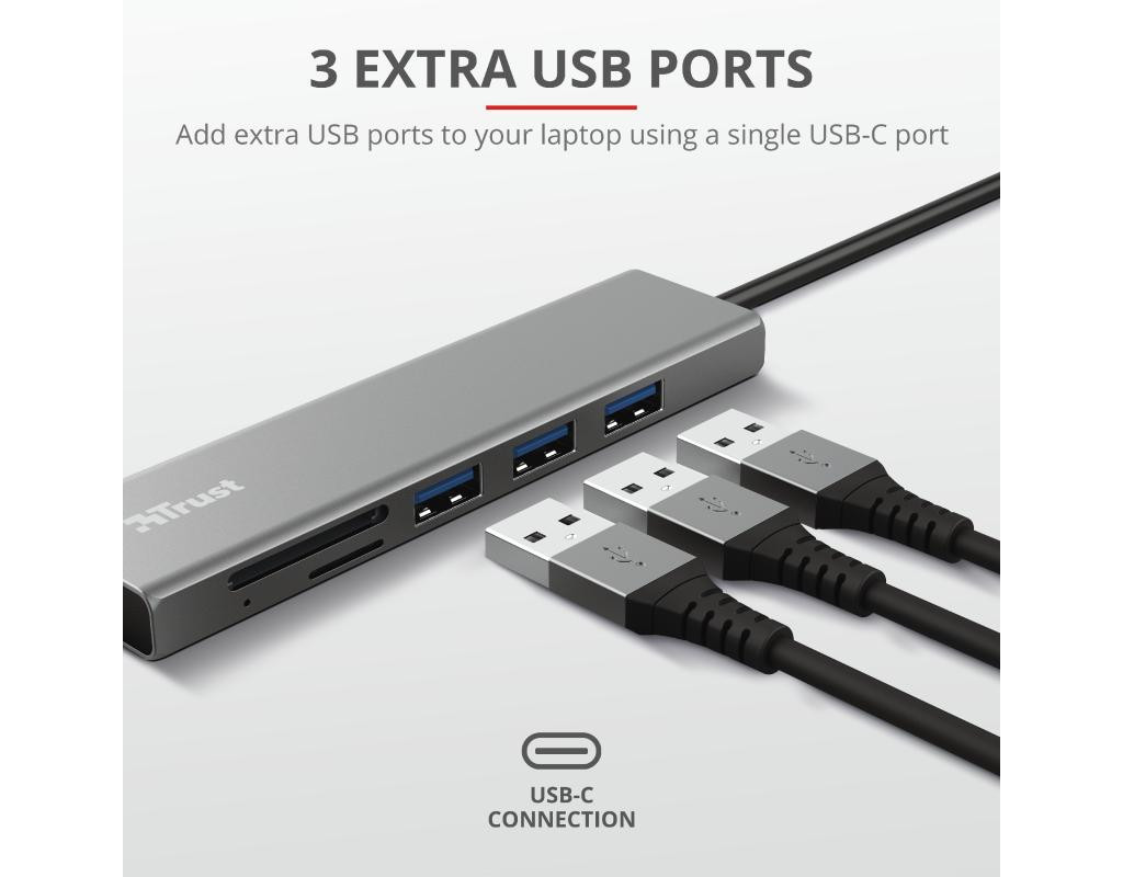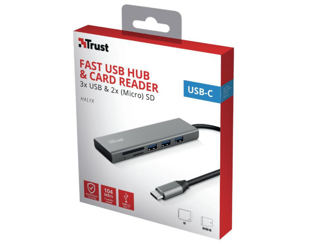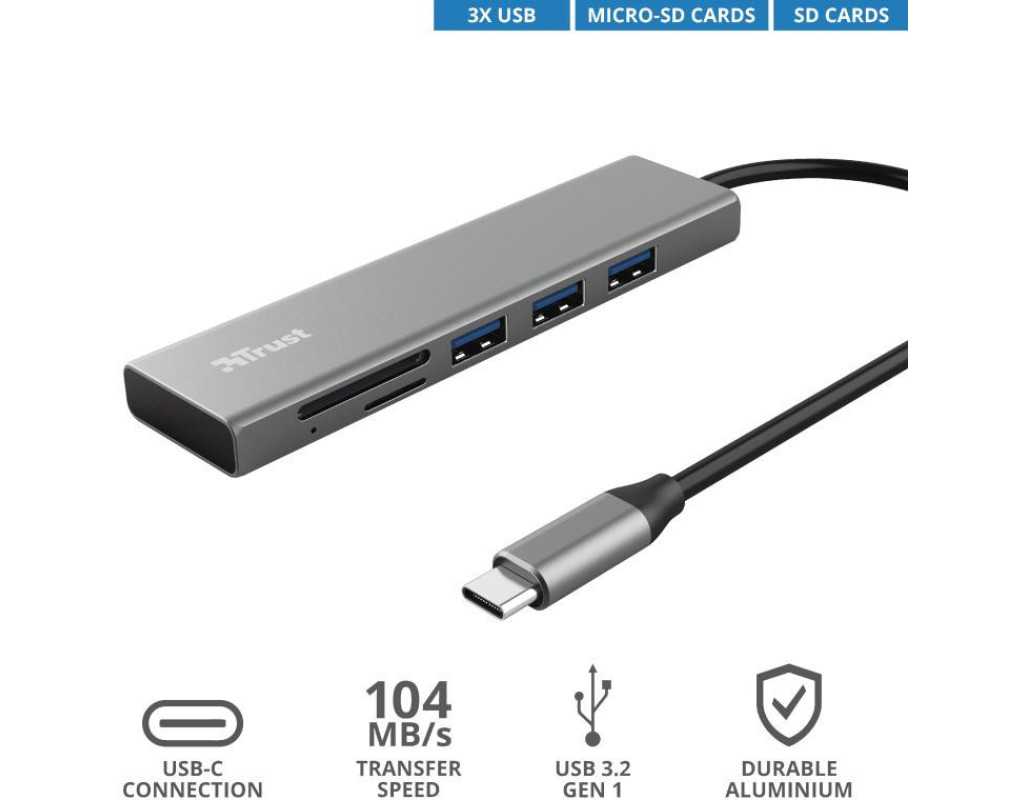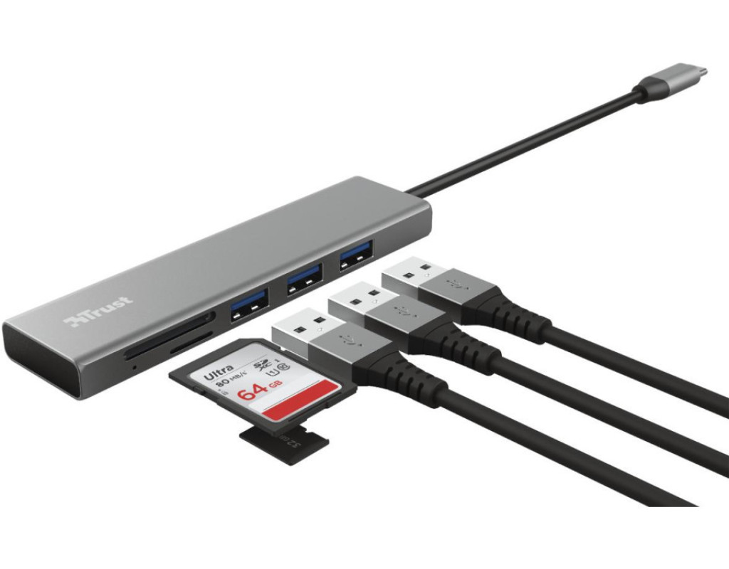 Концентратор Trust HALYX FAST 3USB+CARD READER USB-C ALUMINIUM (24191_TRUST)