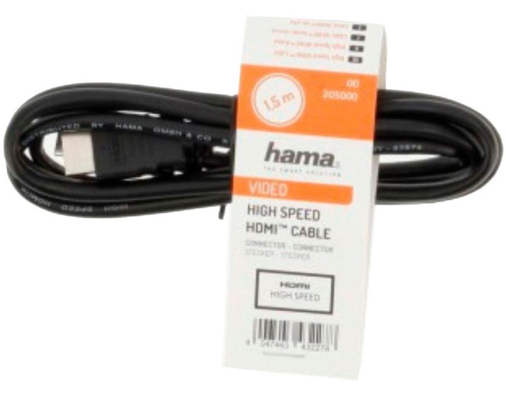 Кабель мультимедийный HDMI M to HDMI M 1.5m black Hama (00205000)