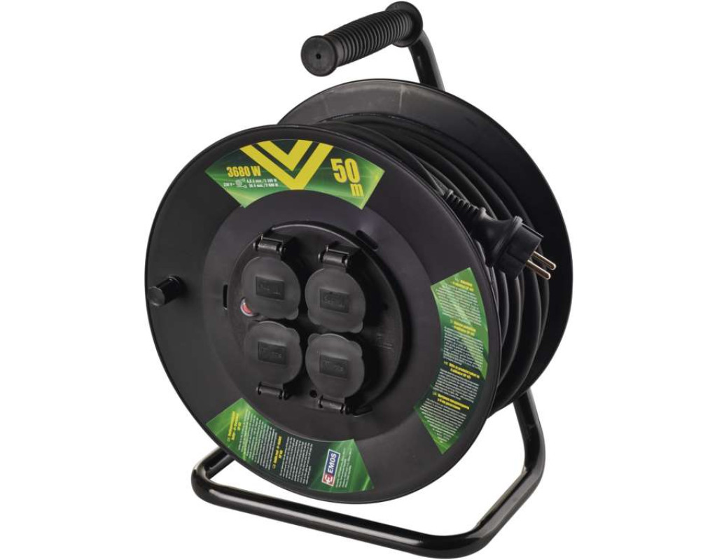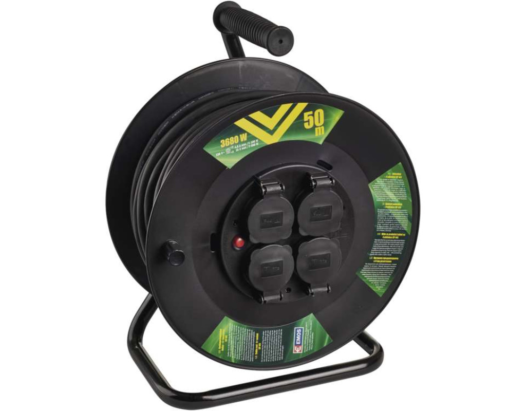 Удлинитель на катушке P08250 от чешского производителя Emos. Имеет сечение кабеля 1,5 мм что обуславливает повышенную устойчивость к нагрузкам от использования приборов с большим энергопотреблением. Основные параметры: