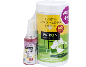 Універсальний чистячий набір Patron Screen wipes 100pcs F3-027 + Hand sanitizer 50ml (CS-PN-F3-050)