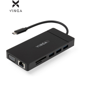 Концентратор Vinga USB-C 3.1 to VGA+HDMI+RJ45+3xUSB3.0+USB2.0+SD/TF+PD100W+Audio (VHYC10)