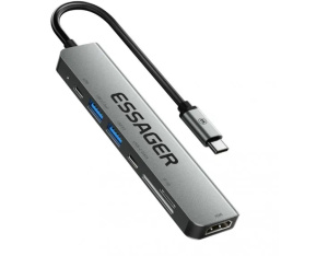 Концентратор Essager USB-C 7-in-1 HDMI + USB 3.2 + USB-C + SD/TF gray (EHB07-QH0G-Z)