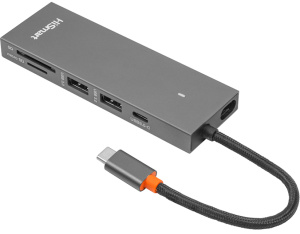 Концентратор HiSmart USB-C to 2xUSB 3.0 + 2xUSB-C + SD + TF + HDMI 4K60Hz gray (CA913459)