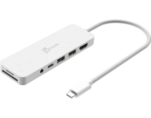 Концентратор J5create USB-C 6-in-1 2xUSB 3.2 + USB-C PD + HDMI 4K + SD/TF + 3.5mm white (JCD373EW-N)