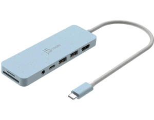 Концентратор J5create USB-C 6-in-1 2xUSB 3.2 + USB-C PD + HDMI 4K + SD/TF + 3.5mm cyan (JCD373EC-N)