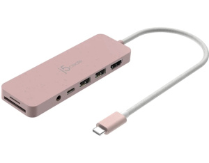 Концентратор J5create USB-C 6-in-1 2xUSB 3.2 + USB-C PD + HDMI 4K + SD/TF + 3.5mm rose (JCD373ER-N)