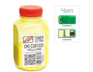 Тонер OKI C301/321, 50г Yellow+chip AHK (1505328)
