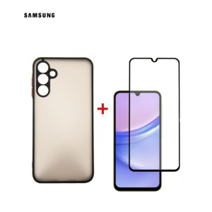 Чохол до мобільного телефона Dengos Kit for Samsung Galaxy A15 case + glass (Black) (DG-KM-69)