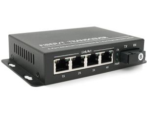4х портовий медіаконвертор ONV-0110S-SCX-S4-B, 4*100М RJ45 + 1*SC порт (1310 / 1550nm, 20km)