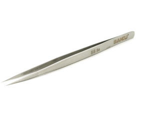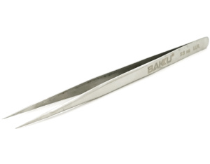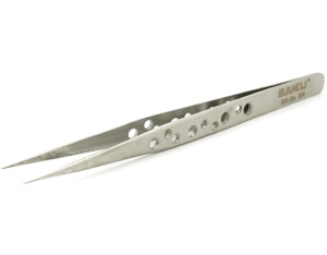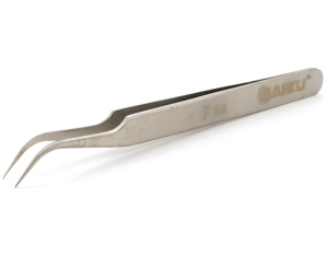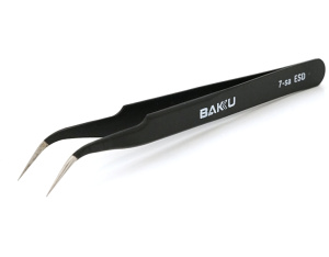 Пінцет вигнутий BAKKU A8 7 SA із чорним антистатичним покриттям.