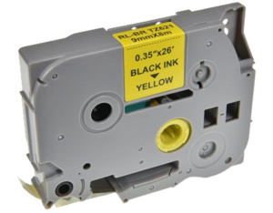 Стрічка для принтера етикеток UKRMARK RL-B-T621P-BK/YE, аналог TZE621. 9 мм х 8 м (900253)
