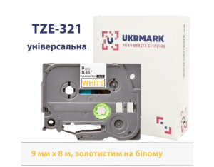 Стрічка для принтера етикеток UKRMARK B-T321P, ламінована, 9мм х 8м, gold on white, аналог TZe321 (900785)